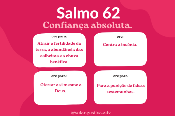 Versículo do dia: “Só em Deus repousa a minha alma, é dele que me vem o que eu espero. Só ele é meu rochedo e minha salvação; minha fortaleza: jamais vacilarei. Só em Deus encontrarei glória e salvação. Ele é meu rochedo protetor, meu refúgio está nele.” Salmo 62:6-8