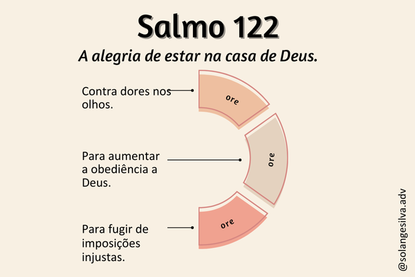 Salmo, 122 (Salmo 121) 1 Que alegria quando me vieram dizer: “Vamos subir à casa do Senhor…”. 2 Eis que nossos pés se estacam diante de tuas portas, ó Jerusalém! 3 Jerusalém, cidade tão bem edificada, que forma um tão belo conjunto! 4 Para lá sobem as tribos, as tribos do Senhor, segundo a Lei de Israel, para celebrar o nome do Senhor. 5 Lá se acham os tronos de justiça, os assentos da casa de Davi. 6 Pedi, vós todos, a paz para Jerusalém, e vivam em segurança os que te amam. 7 Reine a paz em teus muros, e a tranquilidade em teus palácios. 8 Por amor de meus irmãos e de meus amigos, pedirei a paz para ti. 9 Por amor da casa do Senhor, nosso Deus, pedirei para ti a felicidade. |